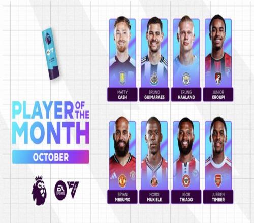 雷速体育10月30日报道宣称 英超官方公布了10月最佳球员的候选名单,其中,哈兰德、姆伯莫、廷贝尔、吉马良斯在列。