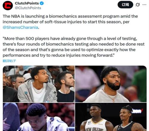 总亚军也遭遇10战9败尴尬处境,快船队迎来难兄难弟!面对导致球星频繁缺席的伤病潮,NBA启动全新生物力学评估计划进行应对。
